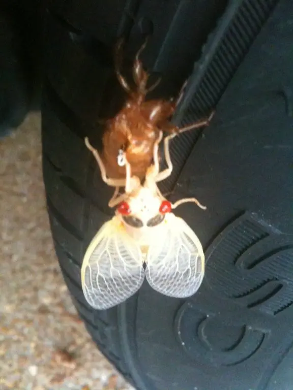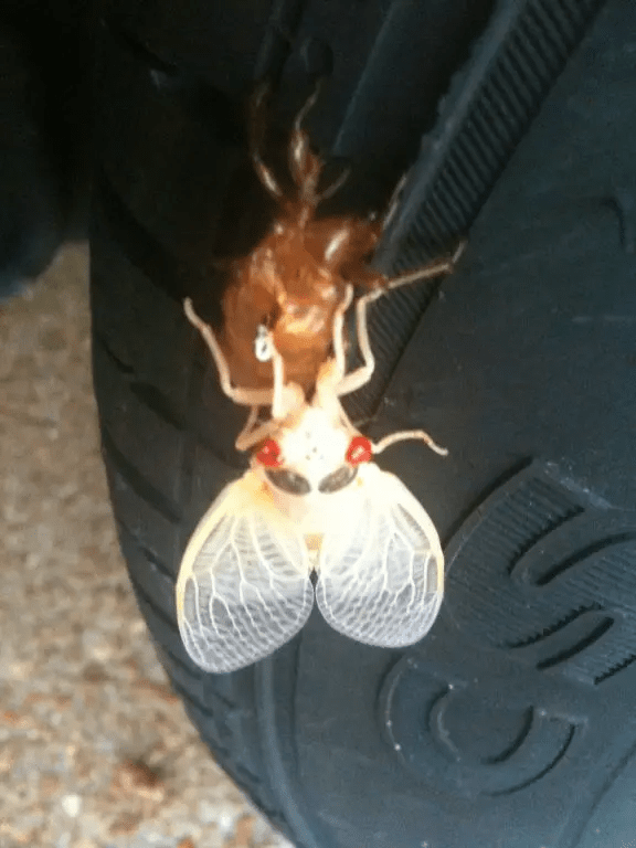 St. Louis is experiencing the re-emergence of the periodic, 13-year cicada this spring. I noticed them this morning as I took my walk. I side-stepped them as I walked along dark, damp sidewalks in my neighborhood. The little, molting critters with the palest yellow, almost white, wings are cracking out of their brown cocoons almost in unison. Their dry, spent shells and newly hatched bodies cling to trees and car tires.